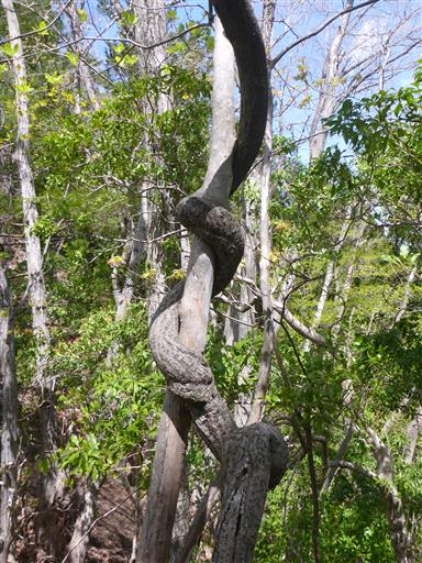 ツル植物に覆われて倒れた枯木。ものすごいツルの量だ。
