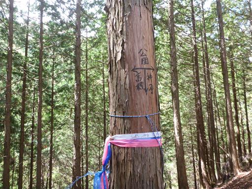 木に何やら文字が書かれている。山の所有者が記載されているのだろうか?