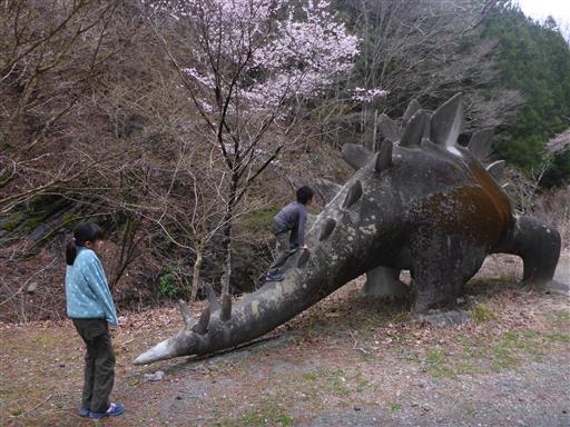 残念ながらトイレは無かったが、大きな恐竜の石像があり、少しここで遊ぶ。