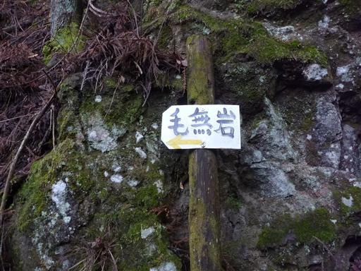 登山道入口からずっと標識も何もなかったが、ようやく毛無岩の標識が現れる。