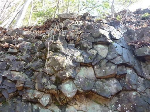こんな細い稜線上に石垣?と思ったら、自然にできた岩だった。