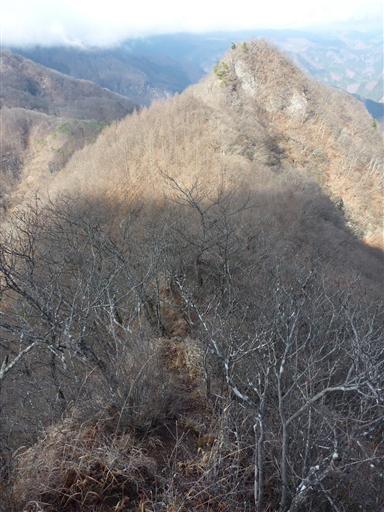 どんどん登っていくと、尾根はだんだんとやせ細ってくる。