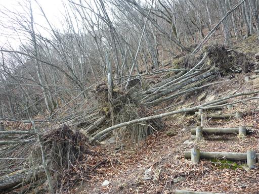 そこそこ急斜面で、不安定な石が多く、石を落とさずに歩くのは辛い。
