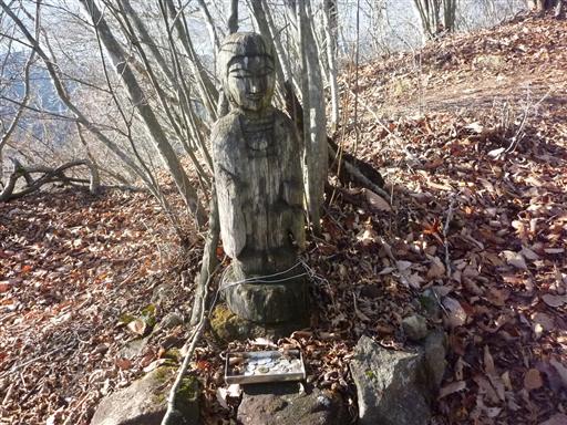 道端に木彫りの地蔵が置かれている。木彫りとは珍しい。
