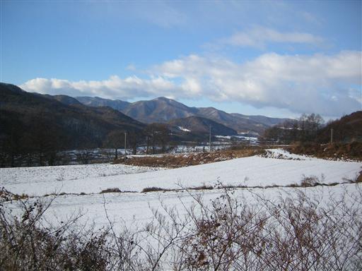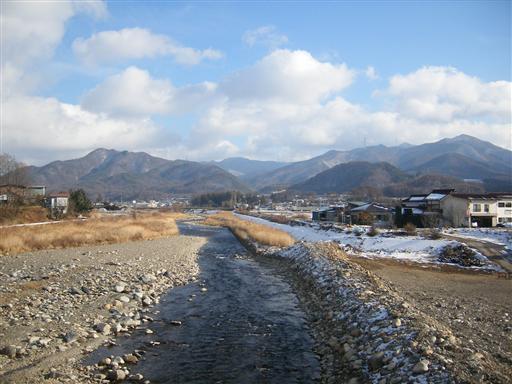 下山。千曲川上流に奥秩父の山並が見える。