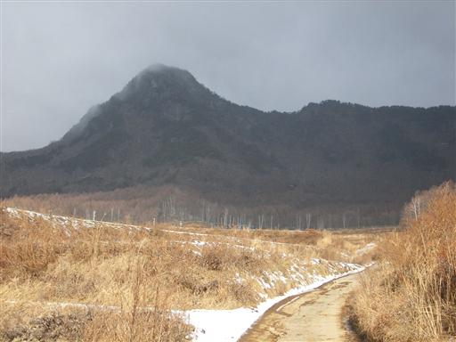 振り返ると丸い頭の天狗山が大きい。