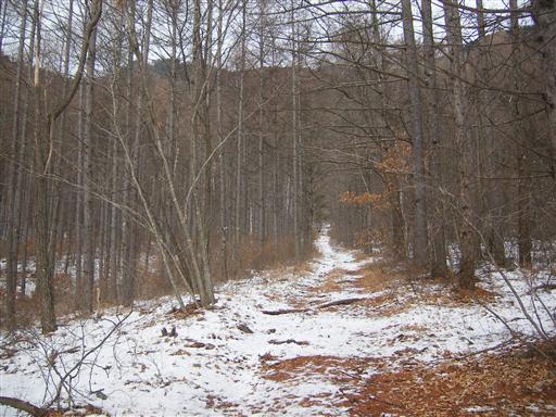 落ち葉と雪が積もる静かな道を登っていく。