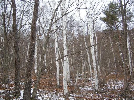山腹は美しい白樺林に覆われている。