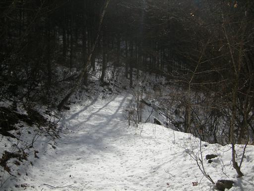 すぐ近くに車道があるので、ここからは人の足跡がついている。