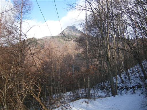 振り返ると天狗山の岩壁が大きい。