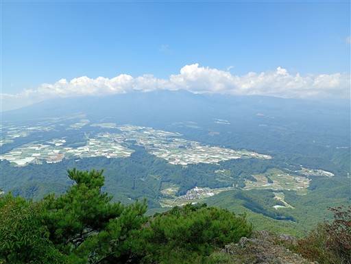 遠く瑞牆山が見えている。ギザギザ頭が特徴的だ。