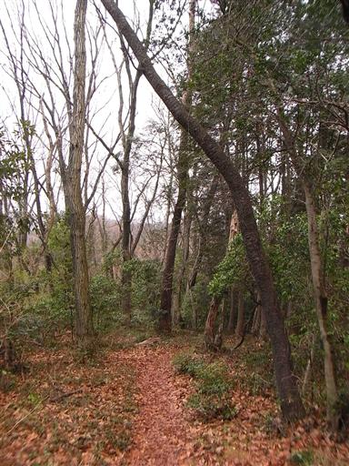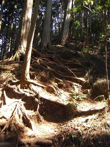 整然と樹木が並ぶ植林地帯と違い、このような道は傘をさしながら歩くのは難しい。