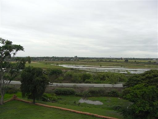 今日はよく晴れている。夕日を浴びてアユタヤ遺跡のプラーンが美しく光っている。