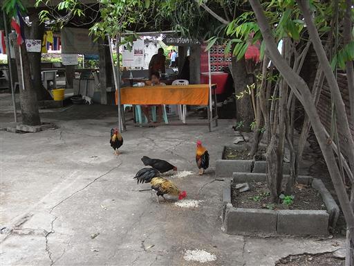 ワット・プー・カオ・トーンに到着するとまず目に入ってくるのがおびただしい数の鶏。