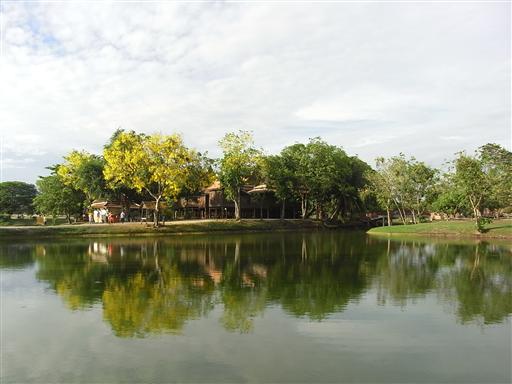 周りはそこそこ広い公園になっていて、芝生で休んでいるタイ人も見られる。