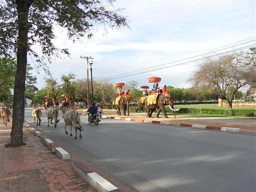 日が暮れてきた。道路を牛が走り、バイクが走り、象が歩いている。