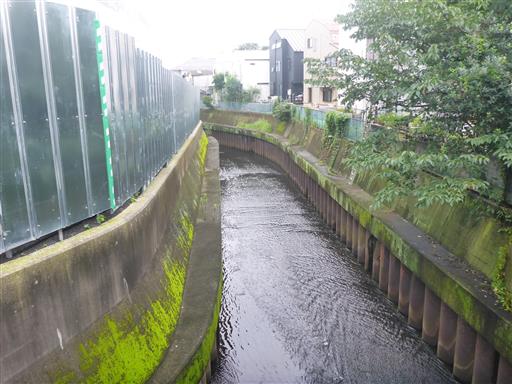 川はしばらくは住宅地の中を流れている。