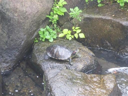なぜか側に一匹の亀がいる。誰かが放したのだろうか?