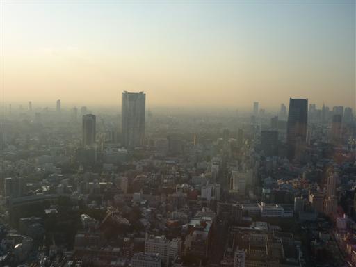 東京の街並み。10階建て程度のビルは非常に小さく見える。