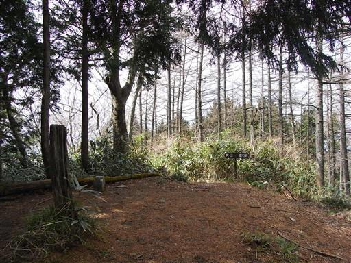 樹林に囲まれた静かな山頂。平日なので当然誰もいない。