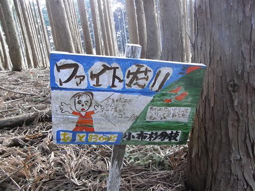 登山道には小学生の書いた励ましの言葉があちこちに置かれている。