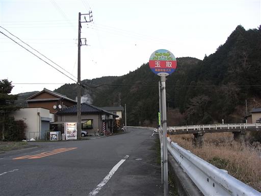 バス停脇には「TAMATORI」と書かれた古いベンチが置いてある。