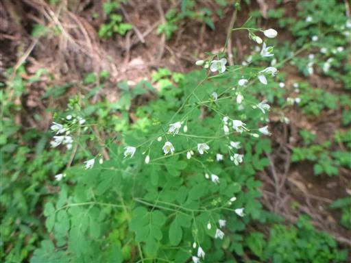 周囲にはマツカゼソウの花がたくさん咲いている。