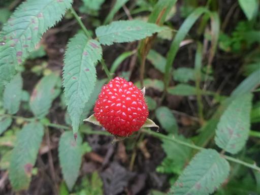 息子はイチゴが気になるらしく、見つける度に立ち止まっている。