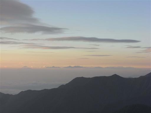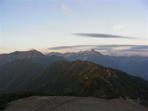 早朝は良く晴れていて、穂高・槍方面がくっきりと見える。