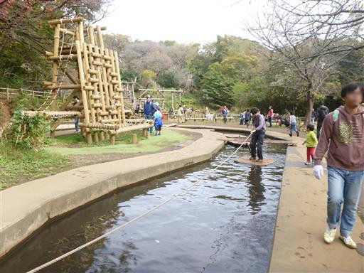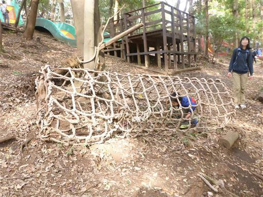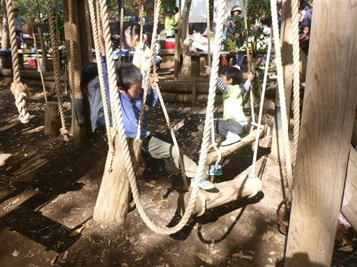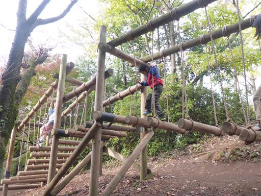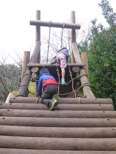 着替えをしている間、子供たちはアスレチックを先に進む。
