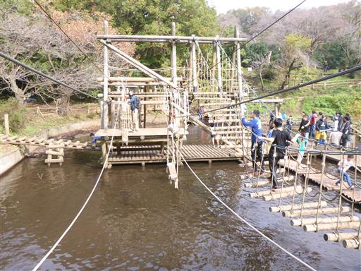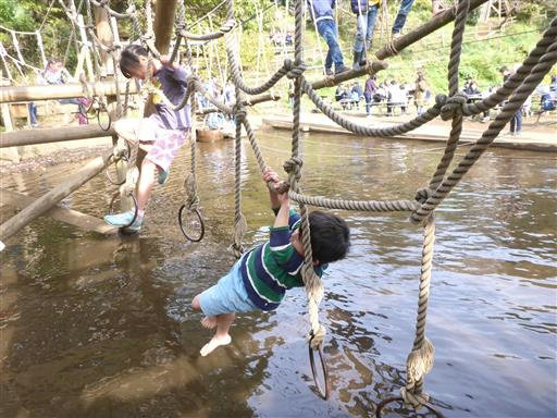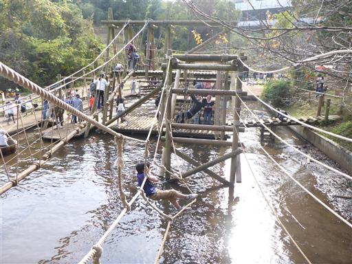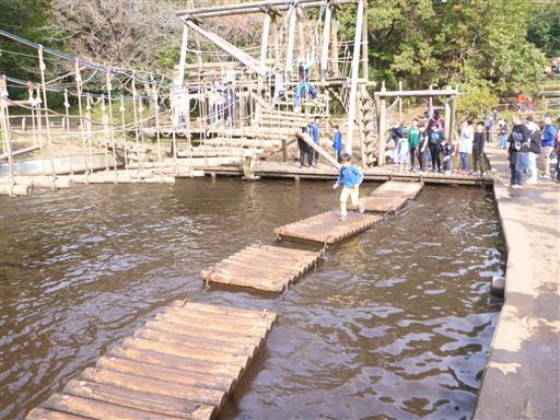 失敗すると水に落ちる恐怖のアスレチックだ。