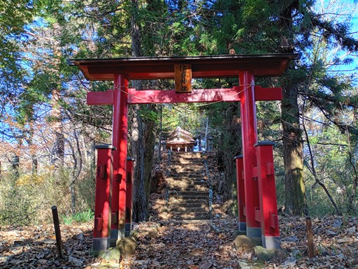 歩き始めてすぐに、住吉神社の赤い鳥居が現れる。