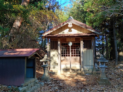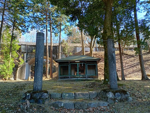 大室神社。後ろに水道橋が見える、不思議な景観だ。