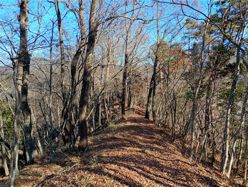 美しい尾根道が続く。左右から町が迫る、その間の狭い山域だ。