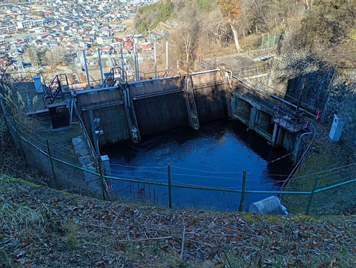 ここから水は斜面を流れ下って、発電に利用されているのだろう。