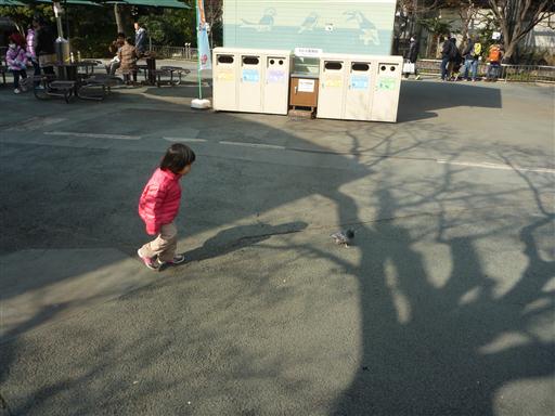 娘はサルと公園内をうろつくハトが気に入ったようだ。ハトを見つけては追いかけている。