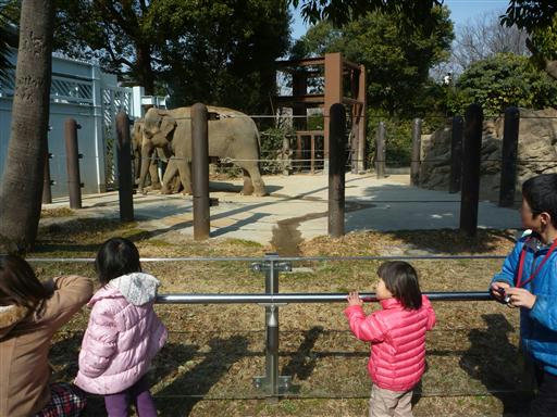 ゾウ。上野動物園は低い位置に棒や壁があって、背の低い子供には見にくい。