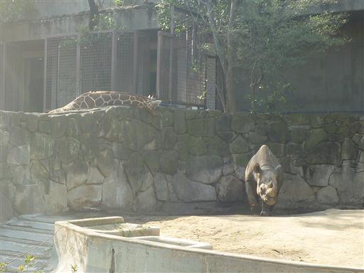 娘には「キリンを見に行こう」と言ってモノレールから注意をそらし、歩いて移動することにする。