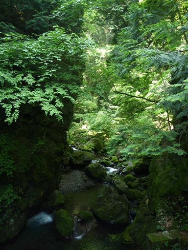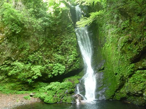今回は千足に出る道を下山する。下山地点付近には美しい天狗ノ滝がある。