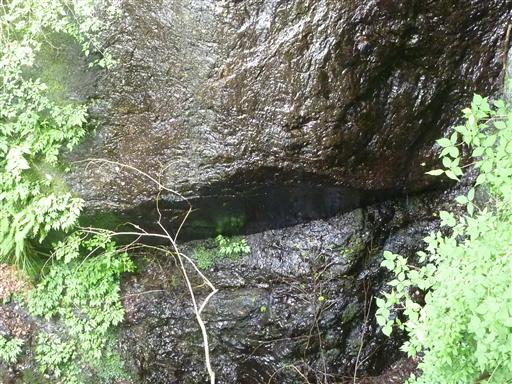 岩盤を流れる滑滝。すっぱりと石が割れた部分は鏡のようだ。