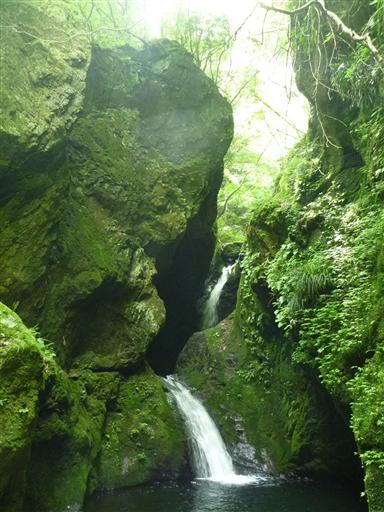 三ツ釜の滝。3段の滝で名前の通り3つの釜がある。