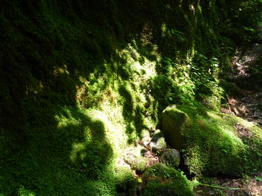 風に乗って水しぶきが飛んでくるので、付近は一面こけが生えている。