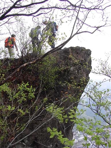 丁須の頭直下に到着。岩の上部には人影が見える。先客がいるようだ。