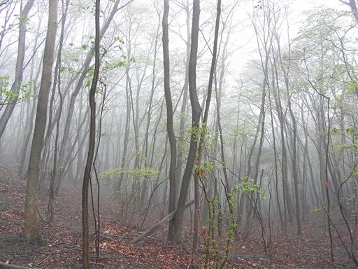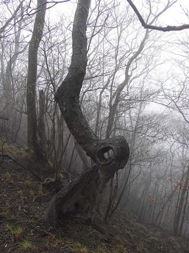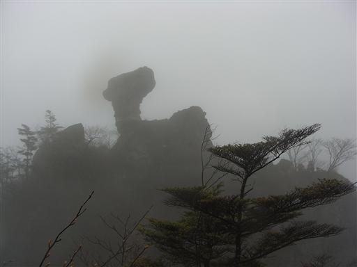 視界が悪い分、高度感はあまり無いが、実際には結構痩せた尾根を歩いている。