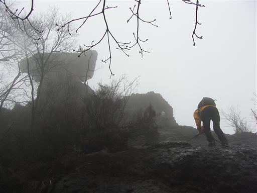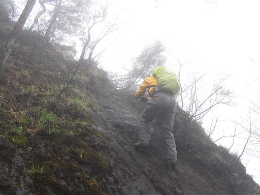 雨がぱらつき岩が濡れているので、コンディションは最悪。