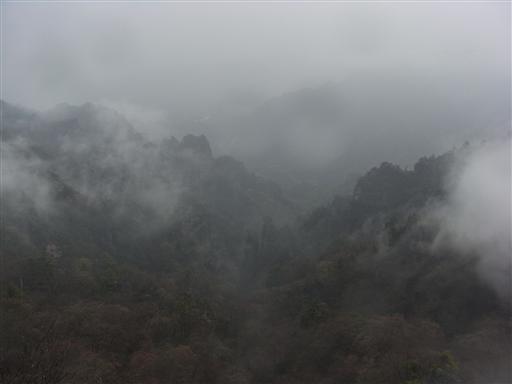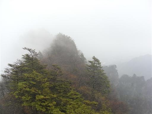 標高を上げていくと雲に覆われ、視界は真白になる。