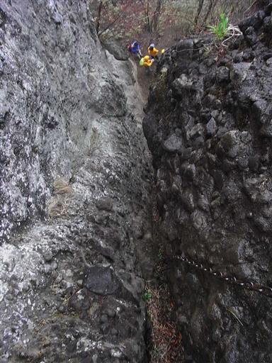 チムニー20mの鎖場。登山ルート中、本日最大の難所。