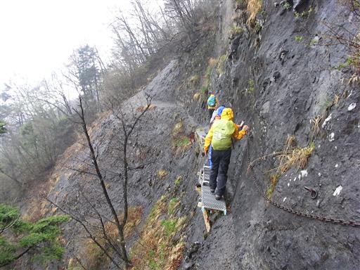 最初の鎖場に到着。近くに水が流れていることもあり、濡れて滑りやすい嫌な鎖場。