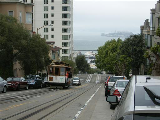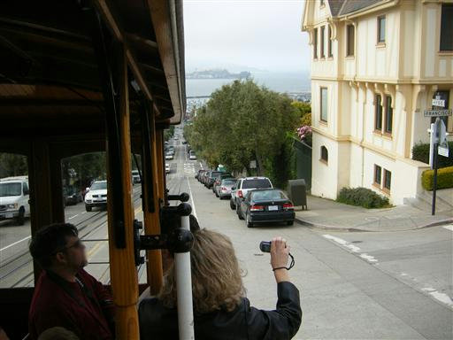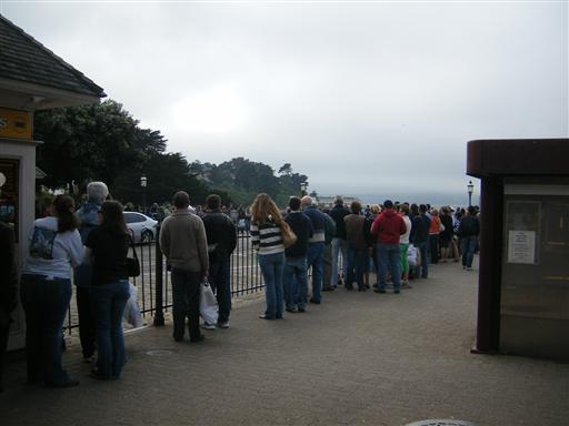サンフランシスコのもうひとつのシンボル・ケーブルカーの乗車待ちの人々。