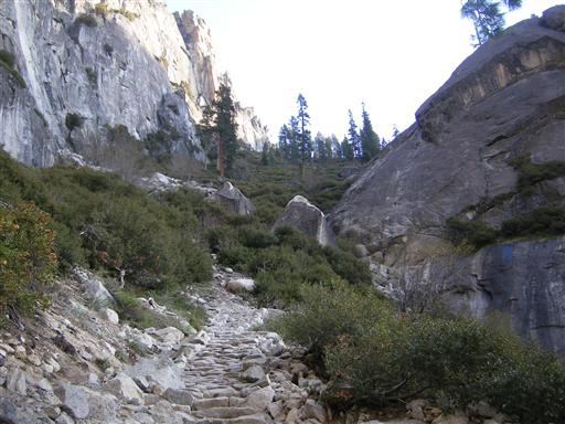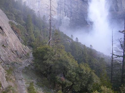 この道からはヨセミテ滝上段を間近で見ることができる。